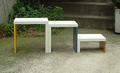 小さな台は、室内のあらゆる場所に現われ、その時その時の空間を創ります。